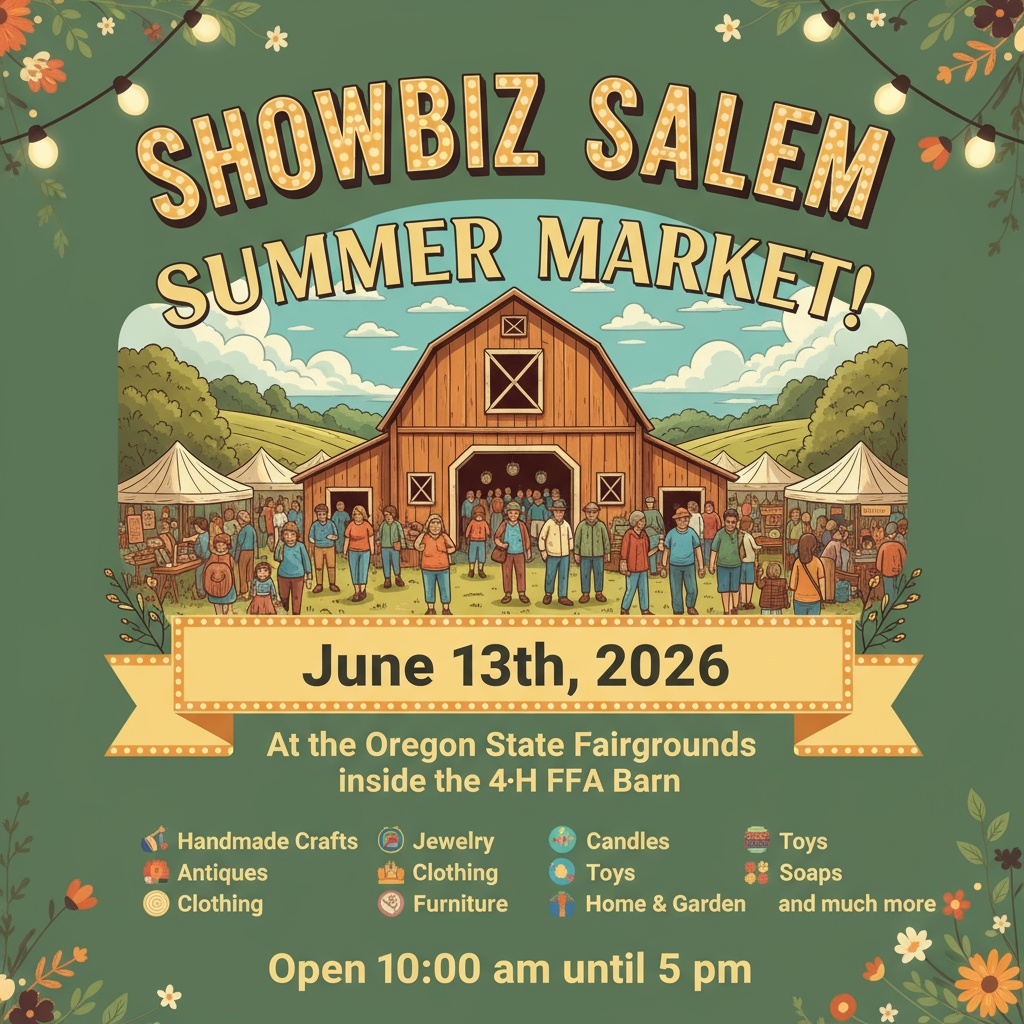 ShowBiz Salem Summer Market 10’ X 30’ Booth Space, Vendor Provides all set-up/display items: $200.00